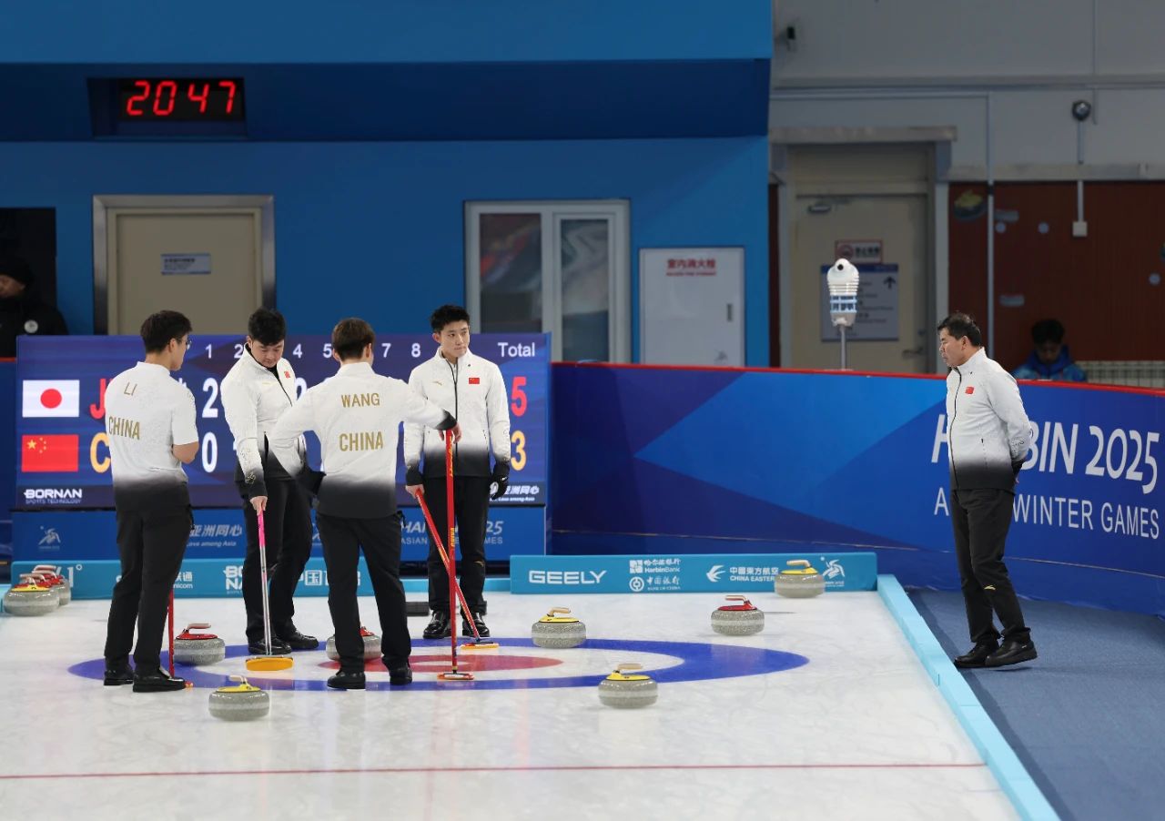 哈爾濱亞冬會(huì)男子冰壺循環(huán)賽在2月12日迎來了中國隊(duì)對(duì)陣日本隊(duì)的比賽,這場(chǎng)比賽前,中國隊(duì)4戰(zhàn)全勝已經(jīng)鎖定B組晉級(jí)資格。開賽后由中國隊(duì)執(zhí)黃色壺先進(jìn)行投擲,經(jīng)過系列賽的磨合,隊(duì)員們之間顯得更加默契,大家從賽前熱身階段就保持著頻繁的交流,教練員也在熱身階段走上冰場(chǎng)和隊(duì)員們一起交流部署。